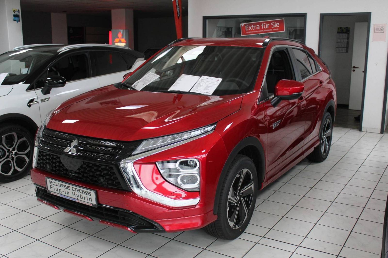 Außenfarbe Dynamik Rot, Select Paket:, 360 Grad Kamera, Seitenschweller in Wagenfarbe, Stoßfänger Unterseiten in Wagenfarbe, Unterfahrschutz in Wagenfarbe, Mitsubishi Power Sound System, Sitzheizung hinten außen, 230V Steckdose im Gepäckraum, Lenkrad beheizbar, Adaptive Tempoautomatik, Totwinkelassisten, Ausparkassisten,